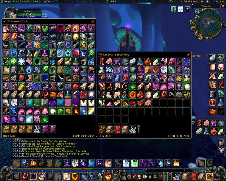 - Combuctor – Классический вид инвентаря, стилистика WoW