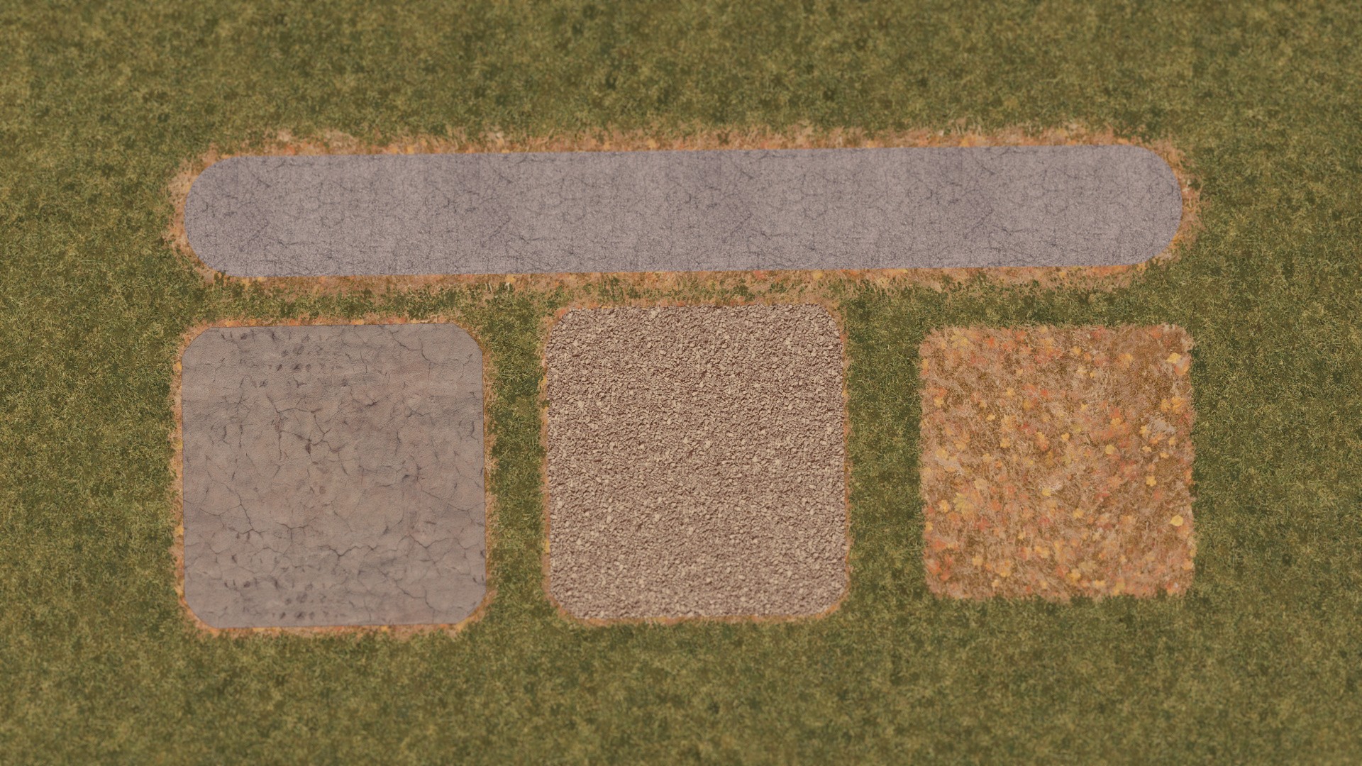 Эта тема позволяет создавать красивые осенние пейзажи, используя текстуру покрытой листвой травы. Используйте мод Extra Landscaping Tools, чтобы рисовать на своей карте.