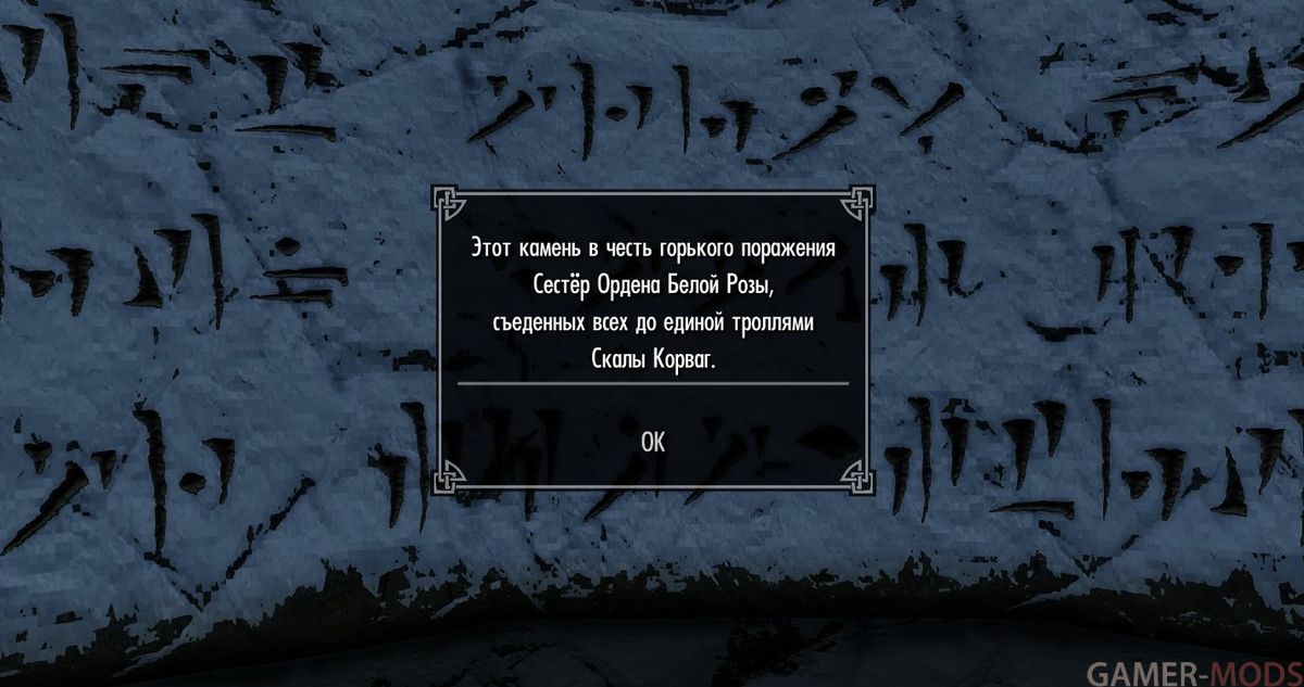 Текст был взят из вики elderscrolls.fandom.com/ru/wiki и tiarum.com/wiki/Skyrim, а также из игровой книги под названием «Драконий язык — больше не миф». Каждое слово стен Слов Силы в Skyrim и Dawnguard / Dragonborn были переведены Insulin16bit