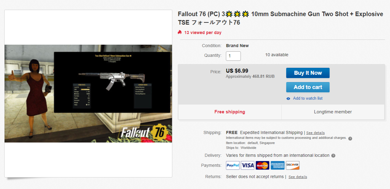 Проблема так называемого «дюпинга», когда создаётся несколько копий одного редкого предмета, актуальна для многих онлайн-игр. Fallout 76 не стала исключением — тем более, что местная система обмена предметами и возможность их перепродажи только способствует этой деятельности.