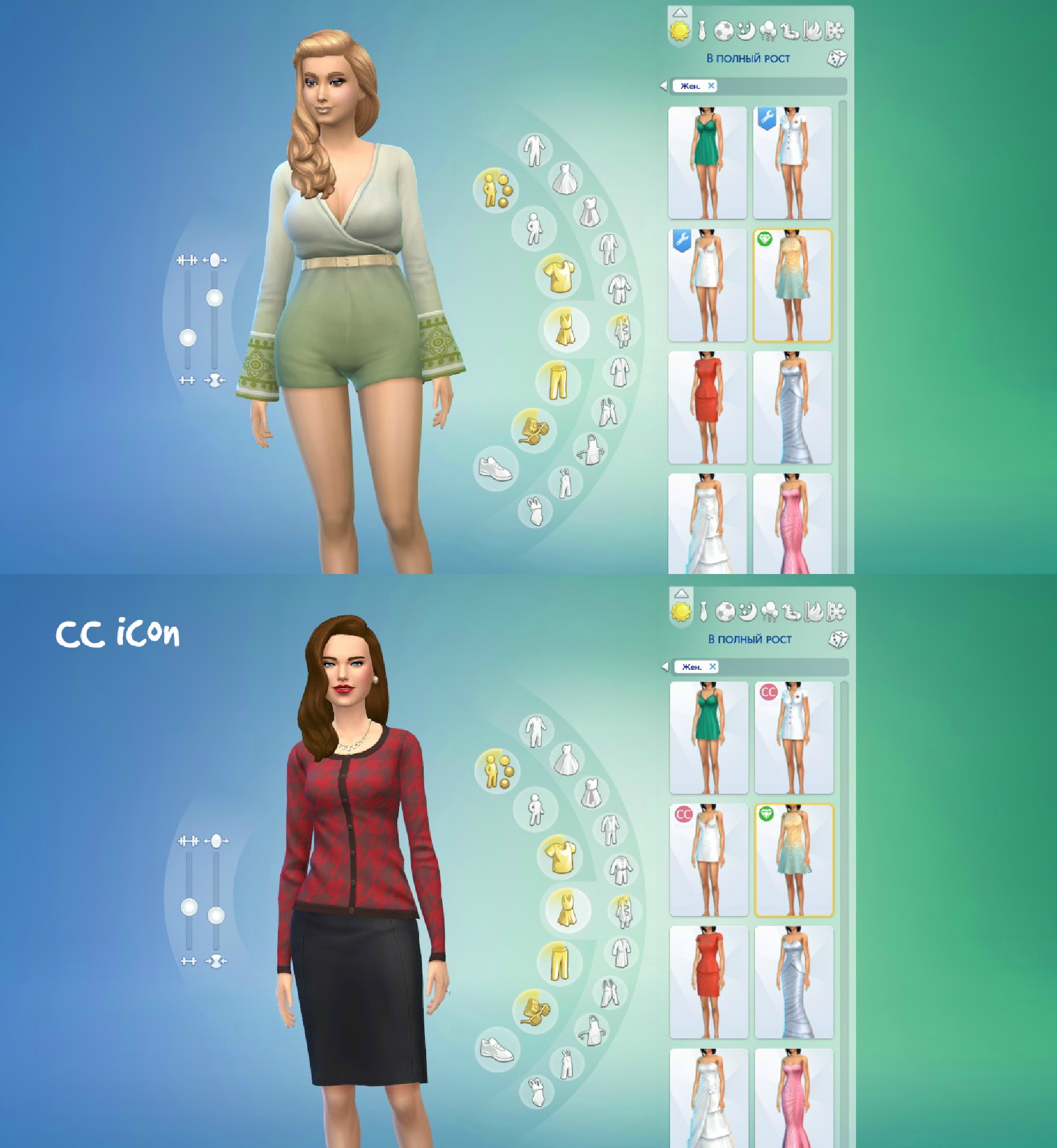 Вы также можете убрать гаечный ключ, но оставить иконку на образцах в редакторе создания персонажа (CAS).