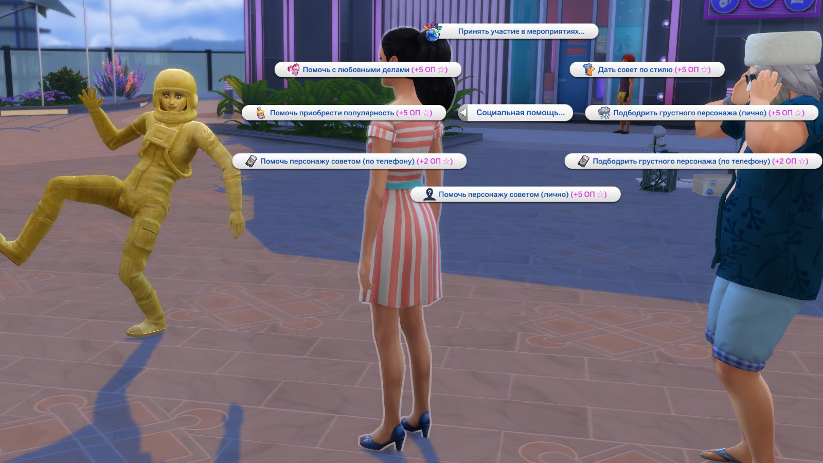 На каждом уровне общественной популярности ваш персонаж сможет помогать другим в сложных для них ситуациях. Персонажи будут автоматически подходить к вашему и просить о помощи.
