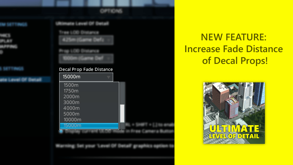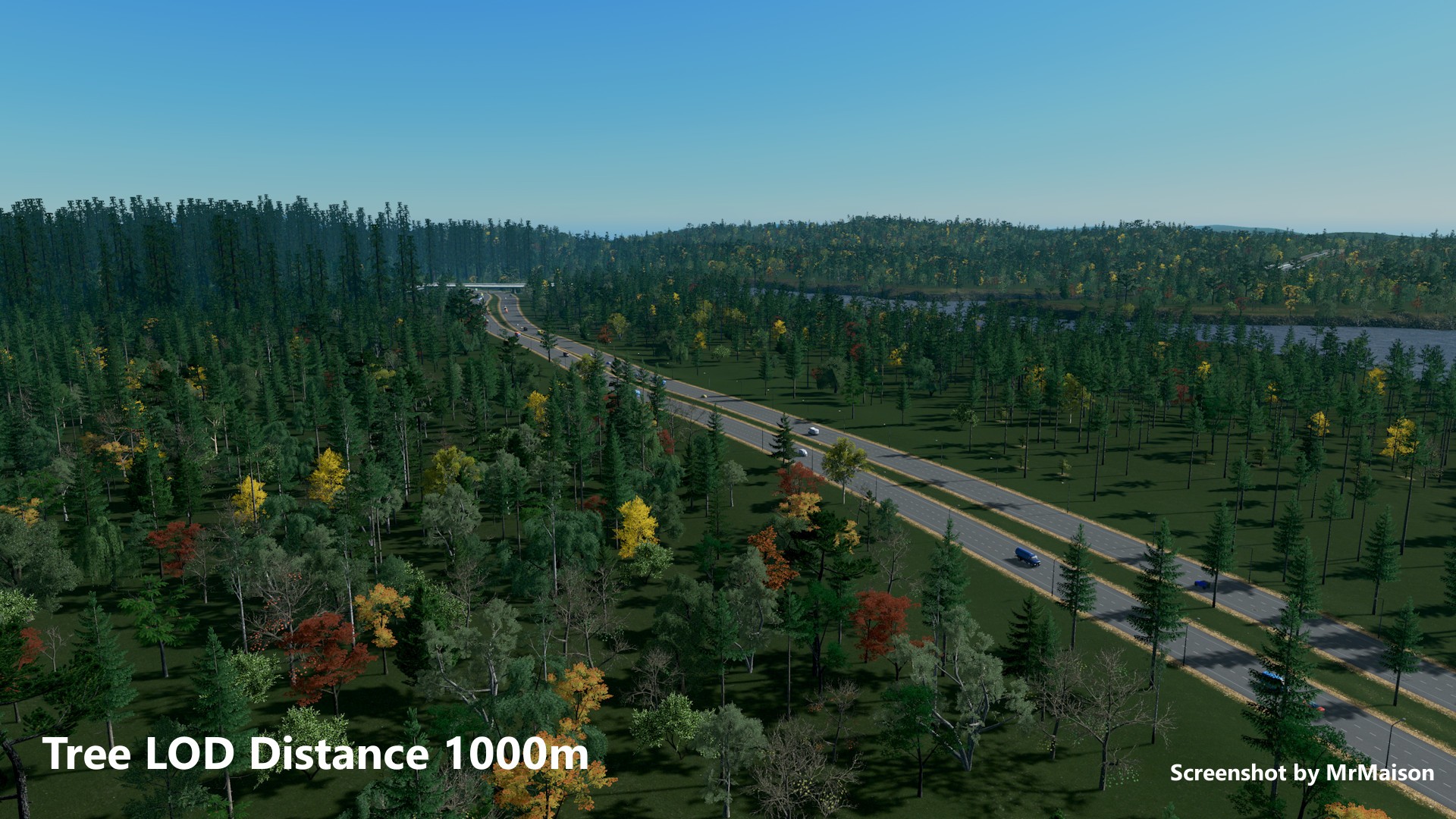 Данный мод позволяет увеличить расстояние рендеринга детальных моделей деревьев, объектов, зданий и дорог. В отличие от LOD Toggler, влияние этого мода на производительность очень низкая. Вы можете использовать его во время игры, а не только для скриншотов! Это также позволяет увеличить расстояние рендеринга до 10 км.